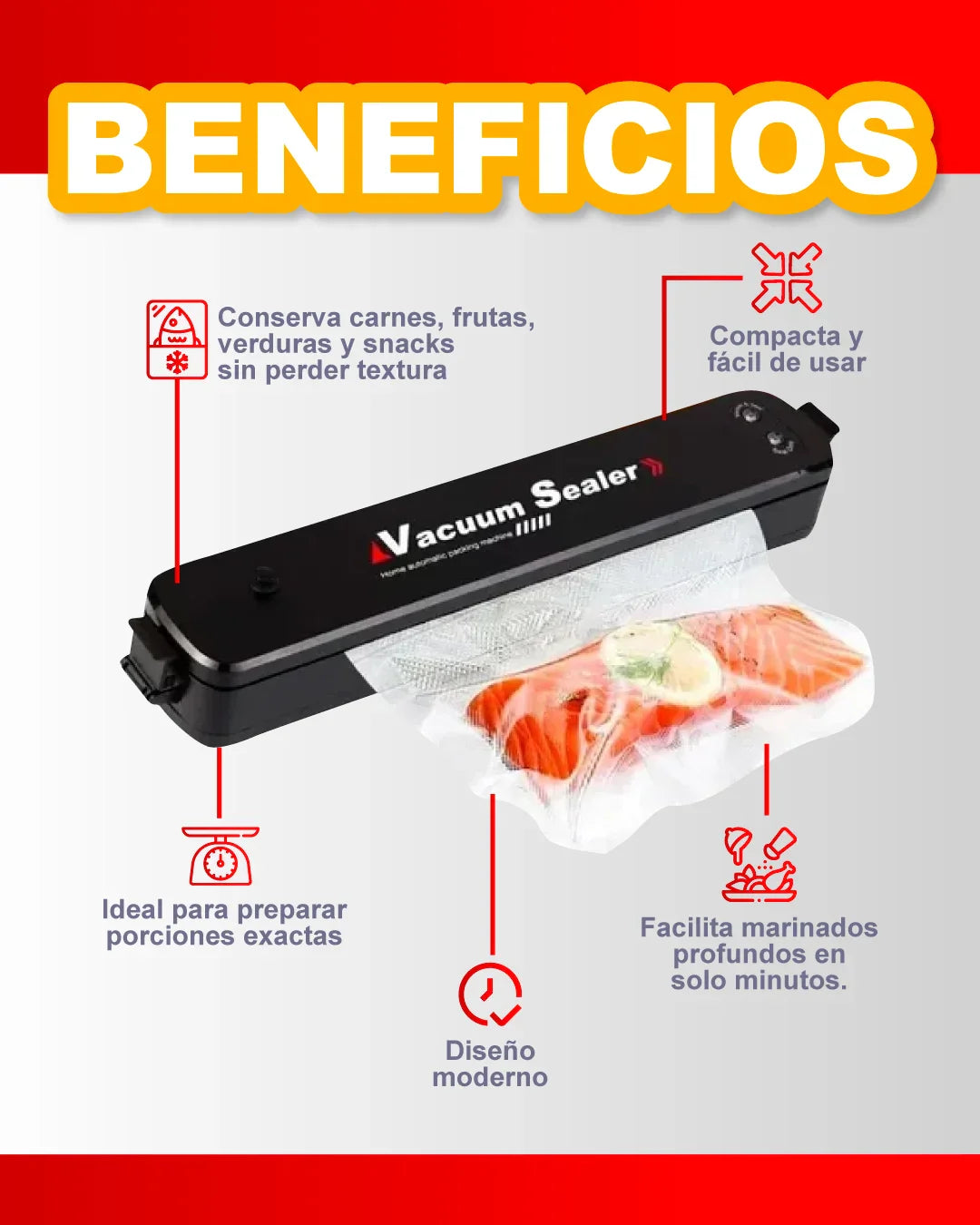 Conserva tus alimentos por mucho más tiempo sin perder sabor ni textura. Ideal para quienes buscan ahorrar dinero, evitar desperdicios y mantener su cocina siempre organizada y práctica.