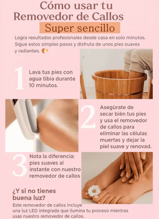 Elimina callos de forma segura y cómoda. Ideal para mantener tus pies suaves todo el año, dándote más seguridad, bienestar y una sensación fresca en cada uso.