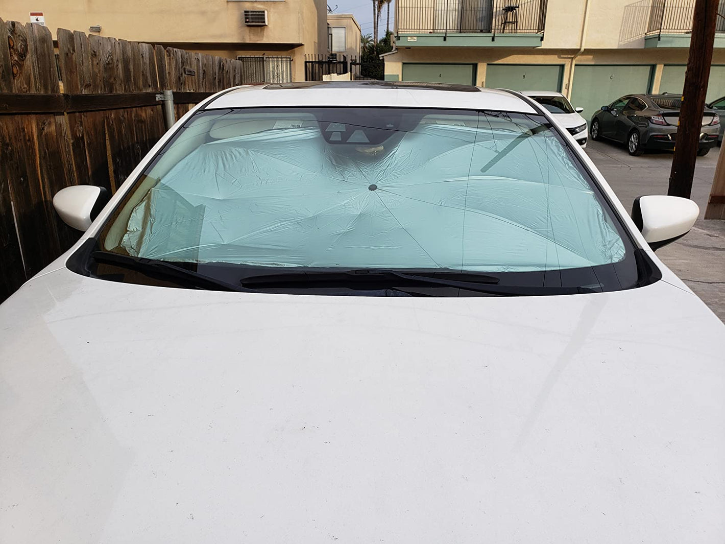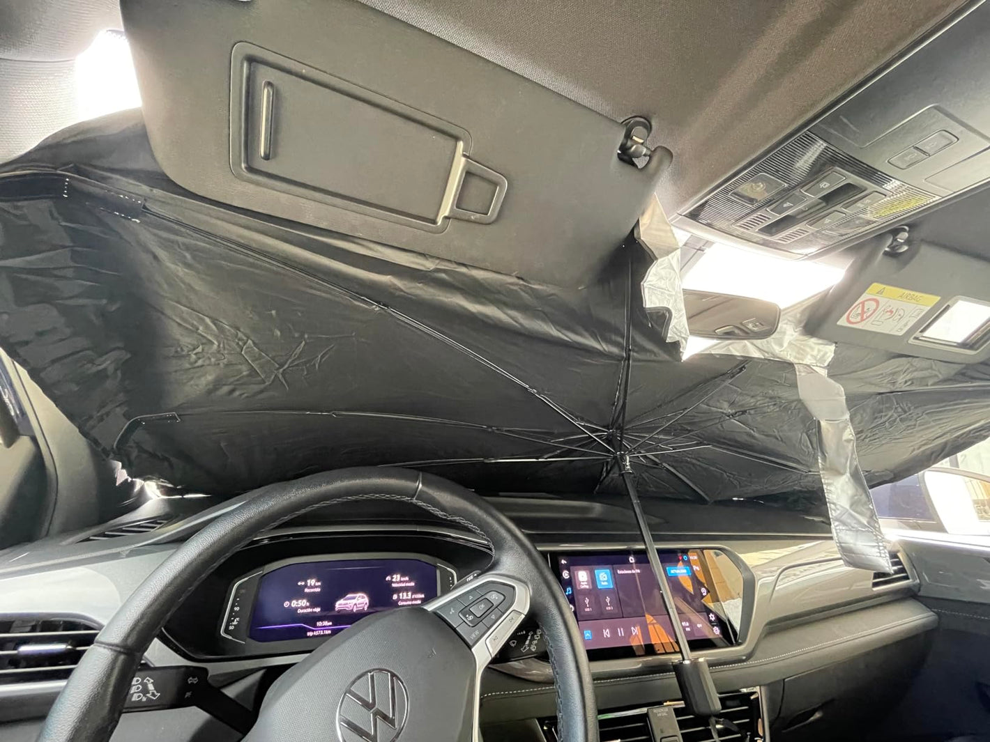 Muy fácil. Solo ábrela como una sombrilla y colócala frente al parabrisas.