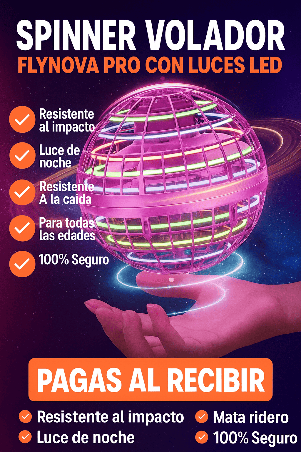 Ilumina tus momentos con un spinner volador lleno de luces LED que entretiene, sorprende y relaja. Ideal para niños y adultos, en casa o al aire libre.