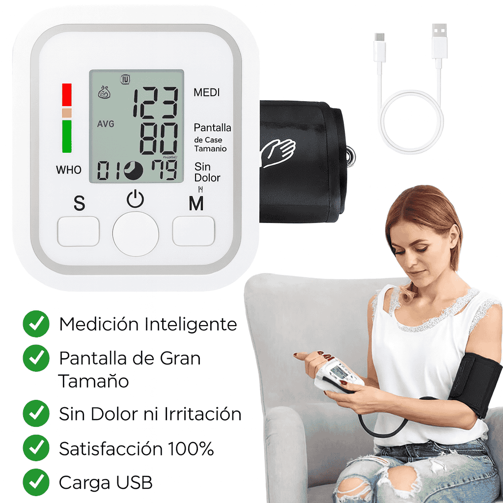 Pantalla grande, cómoda y fácil de leer. Perfecto para adultos mayores o personas con visión limitada. Te permite medir y entender tu presión sin confusiones ni complicaciones.